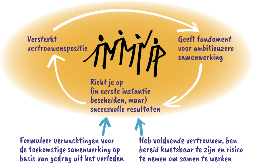In werkelijkheid groeit vertrouwen door samen te werken, zoals bovenstaand plaatje laat zien. Het ontstaat niet op papier, maar in het doen.