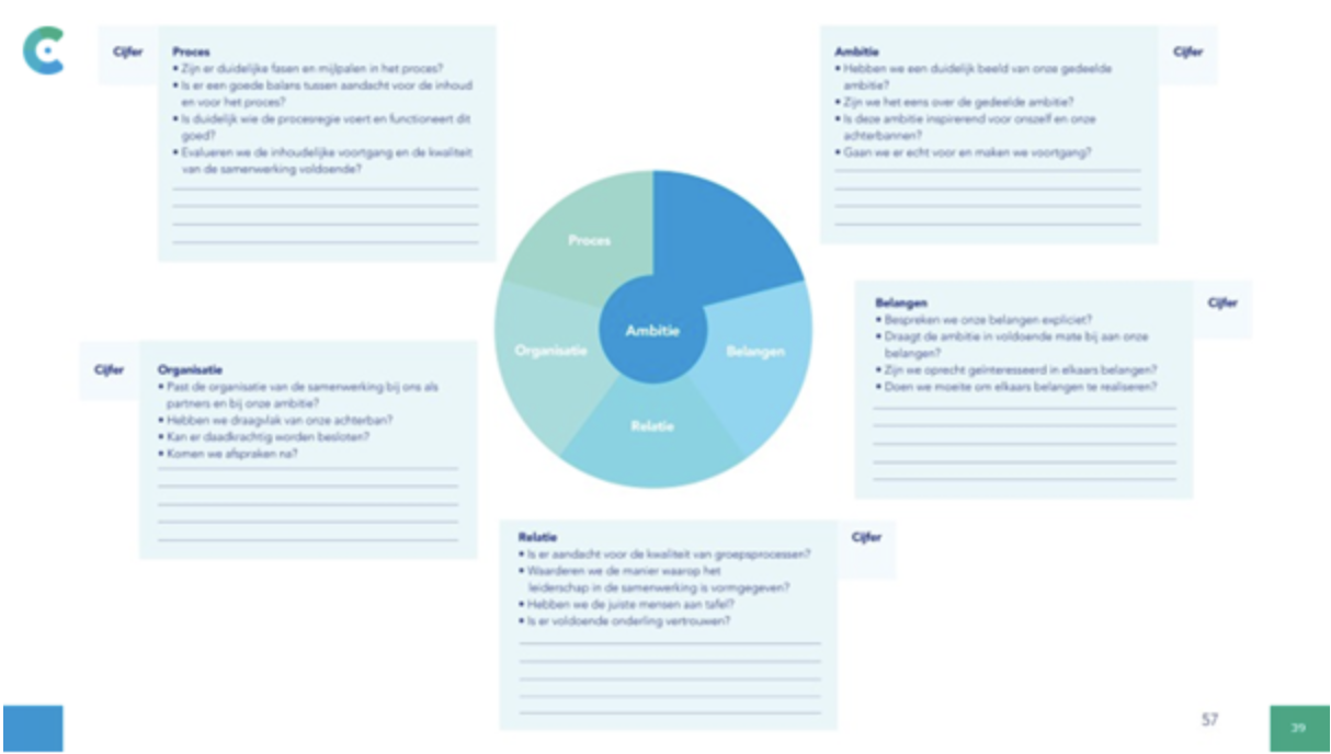 Elke samenwerking begint met een ambitie. Wat willen we sámen bereiken? Die ambitie mag niet te vaag zijn, maar ook niet te klein. Ze moet richting geven én ruimte laten; een wenkend perspectief dat inspireert. Een goede ambitie is aantrekkelijk, relevant en verbindt. Ze tilt de samenwerking boven individuele belangen uit.